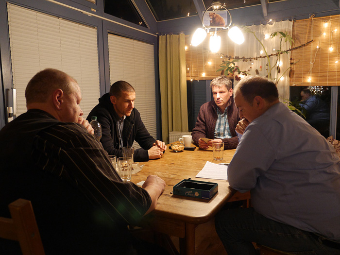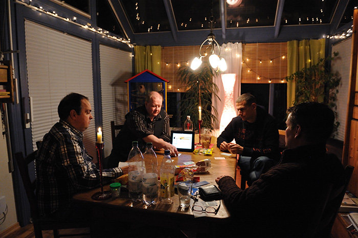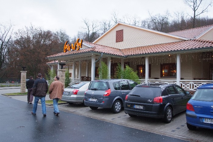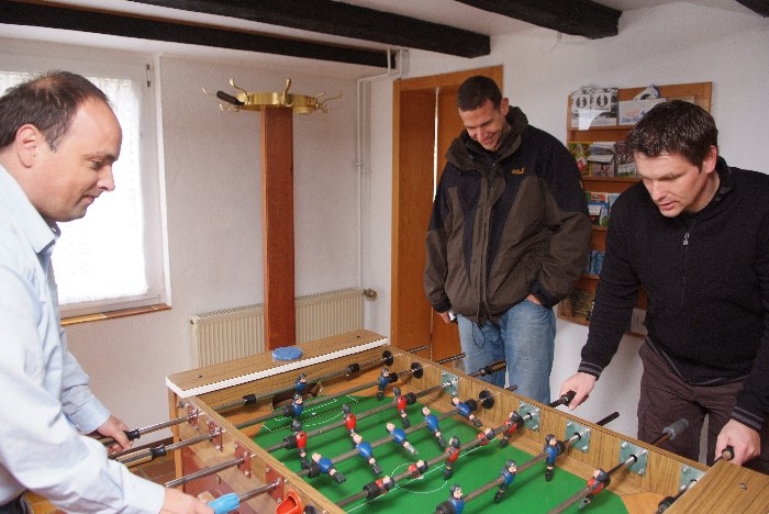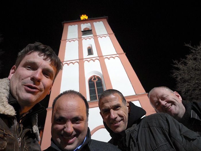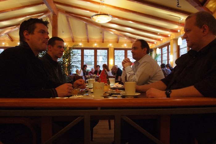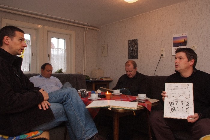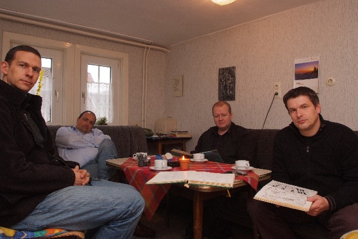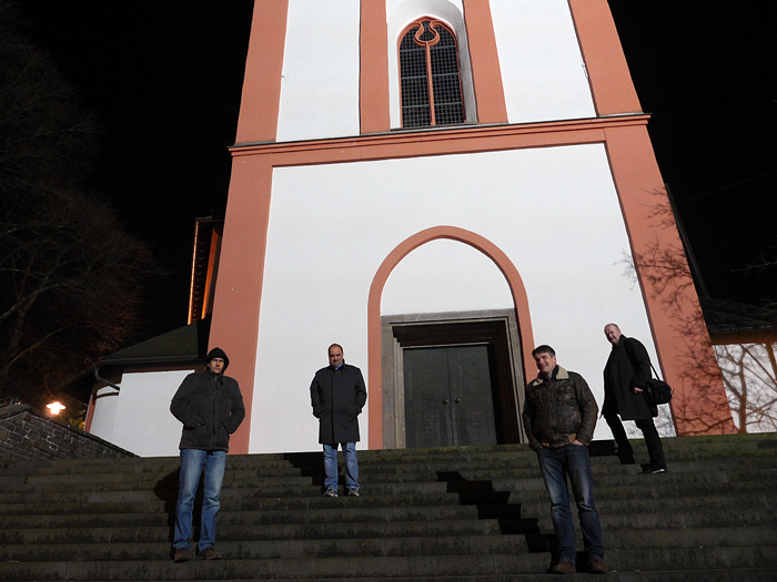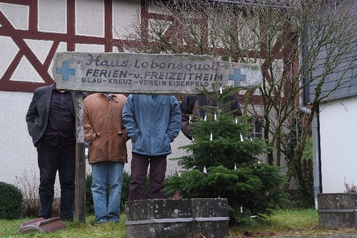 Der Tag begann mit einem Brunch in Siegens „Cafe del Sol“. Wir wurden mit mannigfaltigen Gaumenfreuden verwöhnt. Die folgende Fahrt sollte uns zu dem Ort bringen, an dem alles begann: Haus Lebensquell in Bernshausen bei Bad Laasphe. Vor 25 Jahren verlebten dort vier Jugendliche eine Freizeit und verbrachten eine nicht unerhebliche Zeit mit Kartenspielen im Rittersaal. Die Hutschnur-Geburtsstunde!