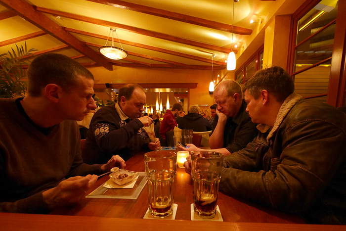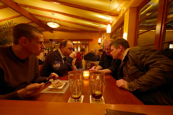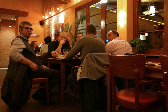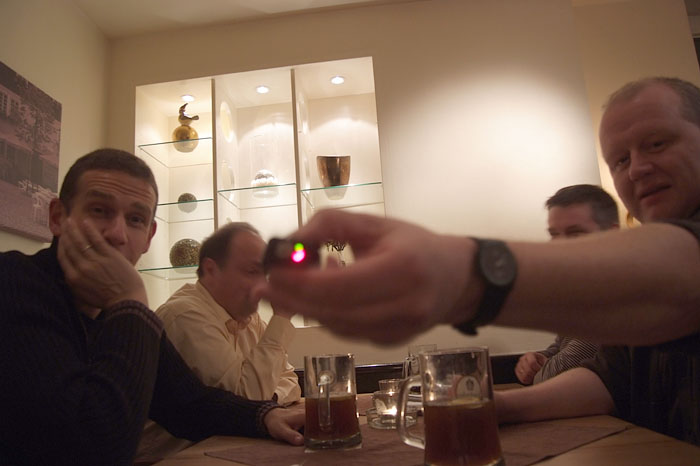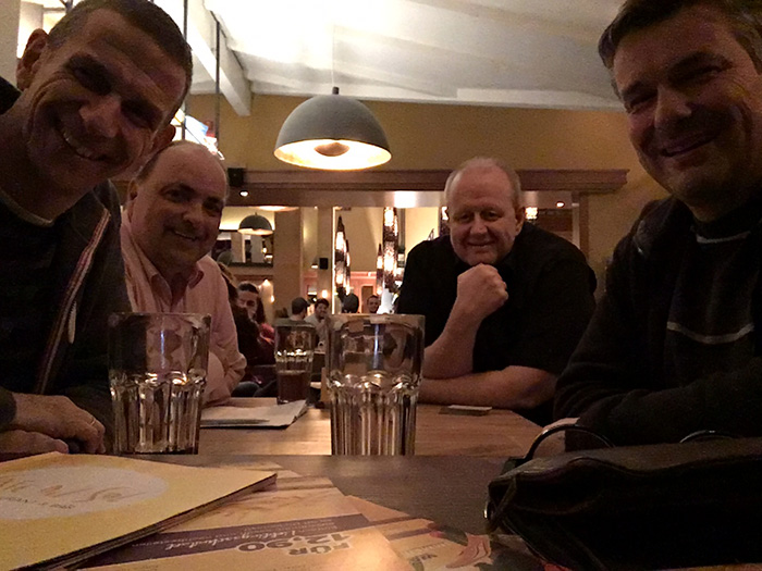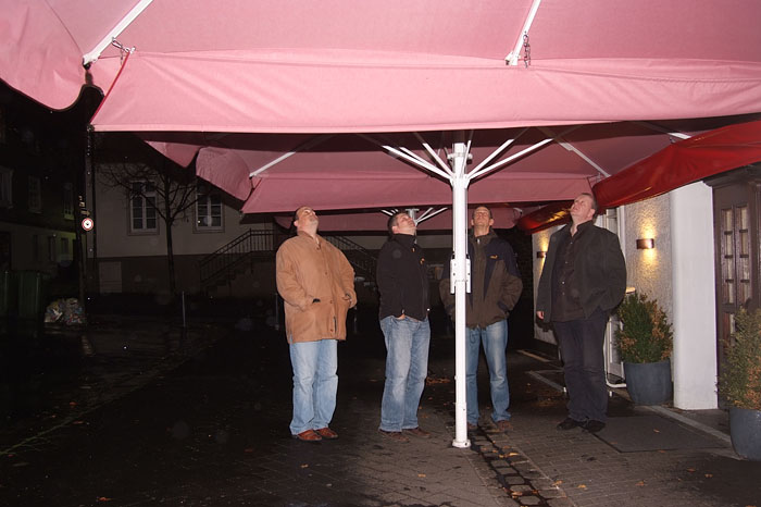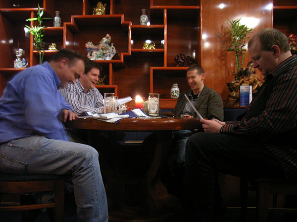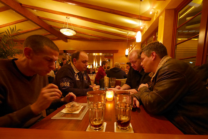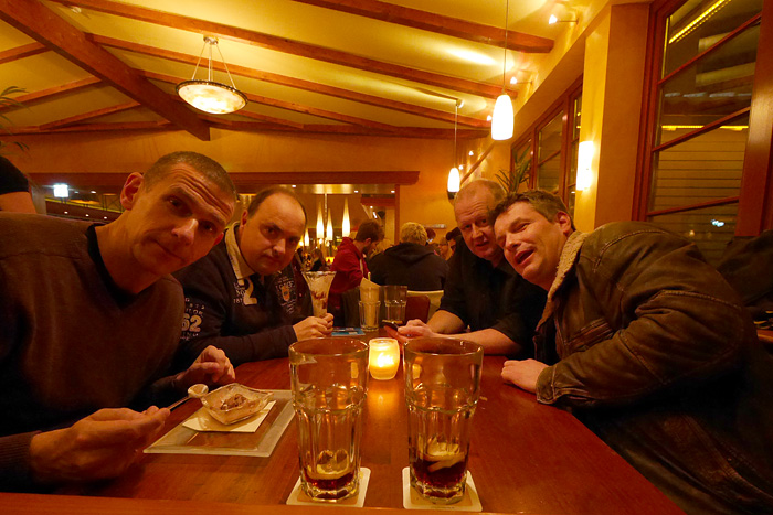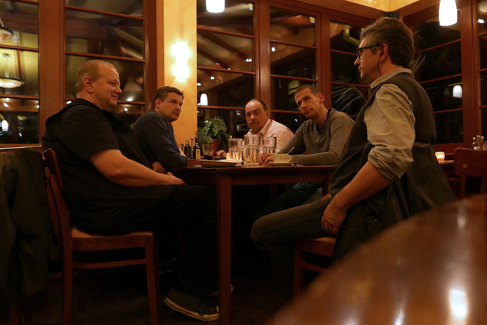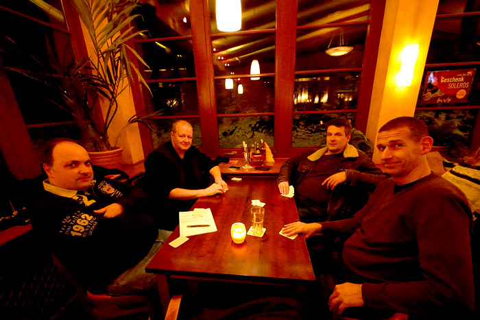 Auch in diesem Jahr wurde als geographische Mitte zwischen den Wohnorten der Spieler die Stadt Olpe ausgewählt. Bei gewohnt unwirtlichem Wetter (strömender Regen und Kälte) wurde das Fest begangen. Der Goldene Löwe am Marktplatz von Olpe besticht durch leckeres Essen und flexible Räumlichkeiten. Abends wurde der Qualm dann doch recht unangenehm, so dass wir uns im Bistrobereich in die engen Sessel versenkten. Wie gegessen, so gesessen!