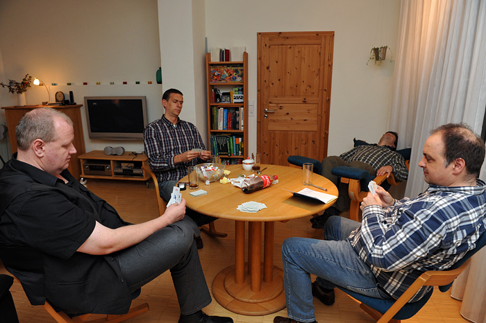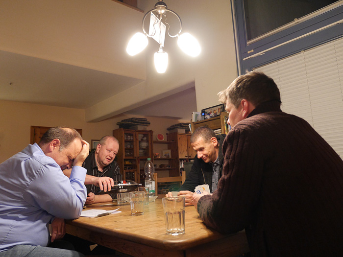 Punkte: Michael + 205, Bernd – 5, Thomas + 155, Henning + 275.